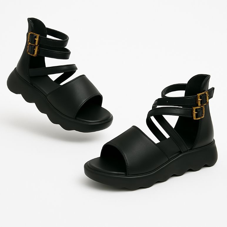 با این صندل خاص، قدمهات رو با اعتماد بردار! طراحی چندبندی با سگکهای طلایی، ترکیبی از استایل